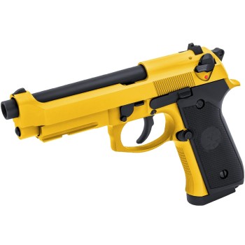 The R9 GBB Pistol combines classic slide geometry with modern gas-system performance to deliver a confident, service-grade sidearm. Its CNC-machined aluminium-alloy slide features the distinctive 180° ejection-port profile, giving the pistol a familiar silhouette and a robust, balanced feel in the hand. A finely-stippled HIPS grip provides secure, comfortable purchase, complemented by a lanyard loop mounted at the frame base for retention and rapid retrieval during active use.