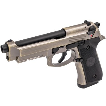 R9 full-metal GBB with 6.03mm/113mm tightbore, 24R double-stack magazine, 20mm rail and dual-stage trigger system.